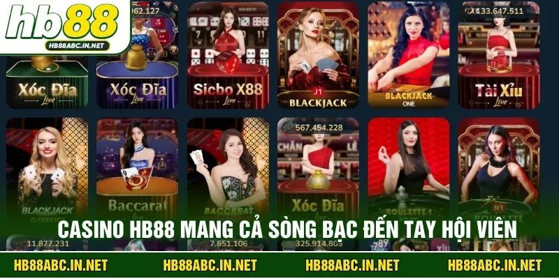 Casino HB88 có thể được coi như linh hồn của nhà cái. Những bàn cược livestream Baccarat, Sicbo hay Roulette mở cửa 24/24 luôn thu hút hàng trăm ngàn lượt khám phá. Và theo thống kê của nhà cái, chính chuyên mục này đã trao cơ hội làm giàu cho triệu hội viên.